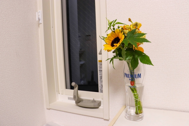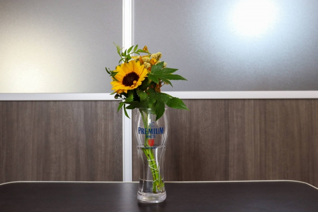 その昔、小学生の頃に植物の成長には水、日光、適切な温度が必要だと聞いた覚えがある。逆に言えば植物はその生命の維持にあたって水を消費するということだ。グラスに花を挿すことで、杯に残った水分をうまいこと持って行ってくれるに違いない。