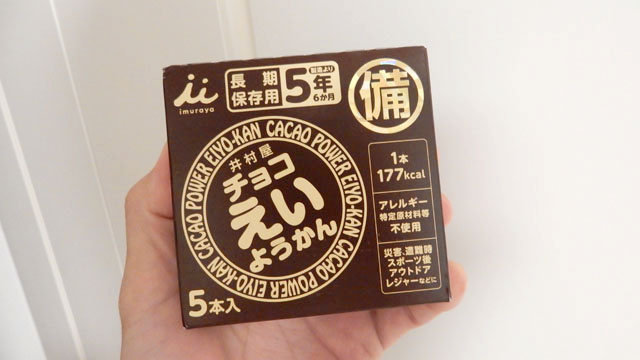 デイリーポータルZでは、まいしろさんが買ってよかったものとして、えいようかんを動画コーナーで紹介している(こちら)。おいしいし、箱からバラすと防災バッグの隙間に詰められて便利なのだそうだ。