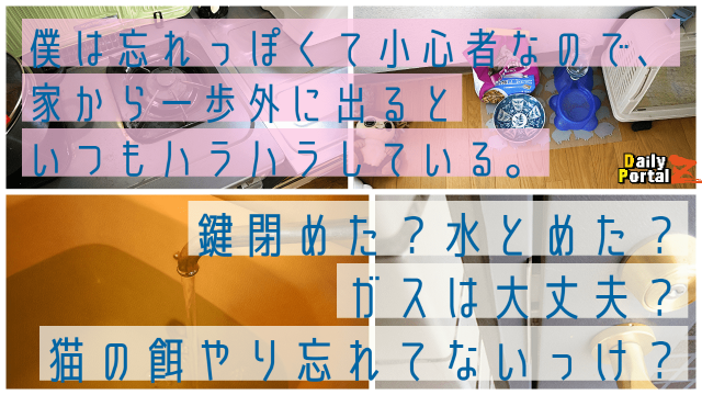 台所、洗面所、風呂。家の三大水回りで蛇口の閉め忘れリスクが存在する。ああ、今朝ちゃんと蛇口閉めてきたっけ。あれ?軽く閉めただけ?ひょっとして漏れてない?ああ、どうしよう、水が出てたらどうしよう。もう、お尻の辺りがムズムズしてしまう。