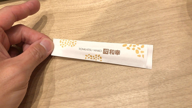 今折るととんかつが冷めてしまう。箸袋を安全な場所によけて、まずは食べた。