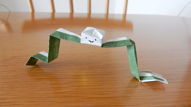 とんかつを食べて、最後にお茶を一服する合間にサッとカニを折ろう。箸置きが必要ないタイミングなのでもう純粋に遊びとして折ることになるが、それもいいだろう。