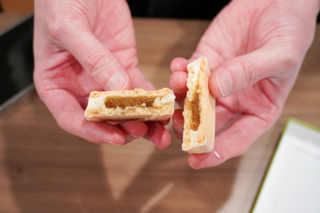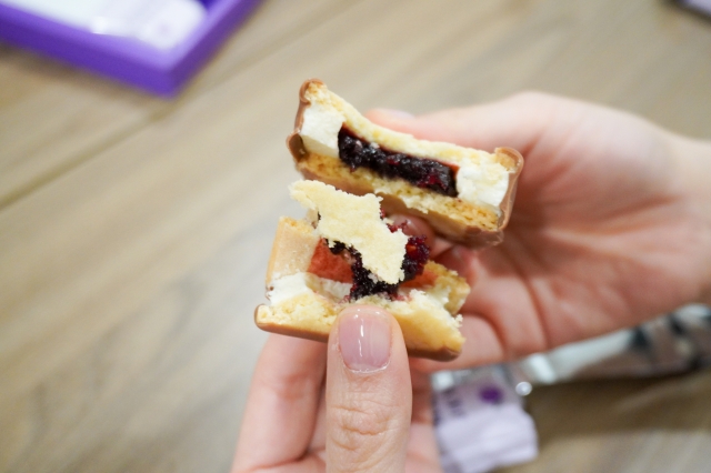 石井さん:チョココーティングのパリパリ、バタークリームのしっとり、ジャムのやわらかさと、食感が一種類だけじゃないのが飽きなくてすごくおいしい