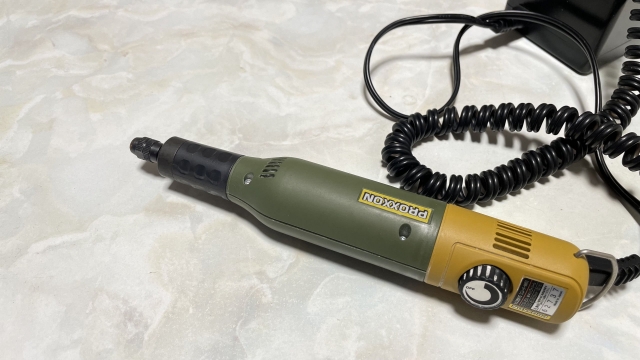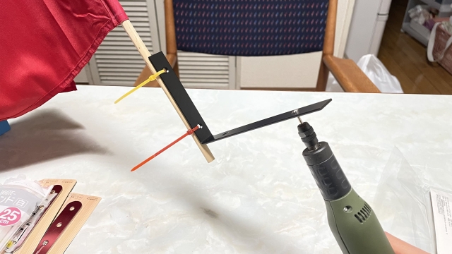 まずは我が家で最もよく回る道具「電動ルーター」に旗をとりつけてみた。