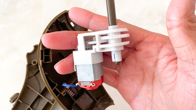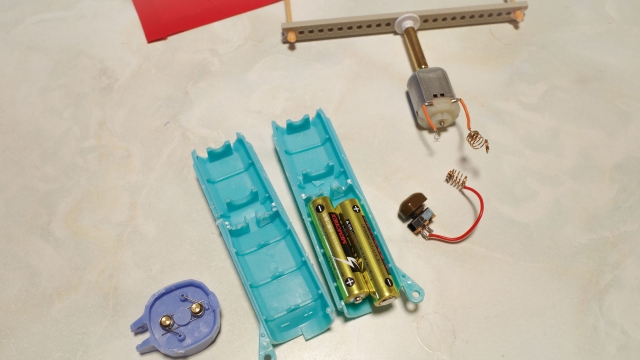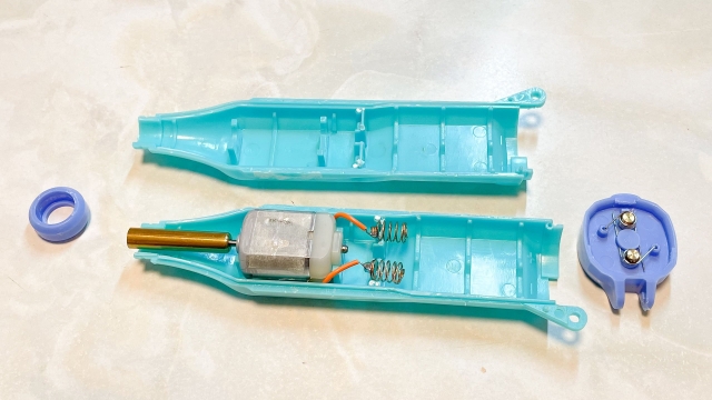 どれも電池がモーターとつながって、モーターの軸に固定されたそれぞれのパーツが回転するだけだろう。