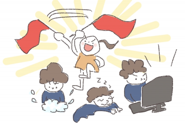 旗の導入から二週間経ち、問題が発生した。パートナーが旗を振るのに完全に飽きちゃったのだ。