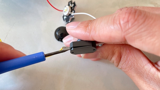 あれこれ試した結果、手元にあった(懐中電灯を分解して入手した)プラスチック製の輪っかがバランスを取るのにちょうどよさそうだ。