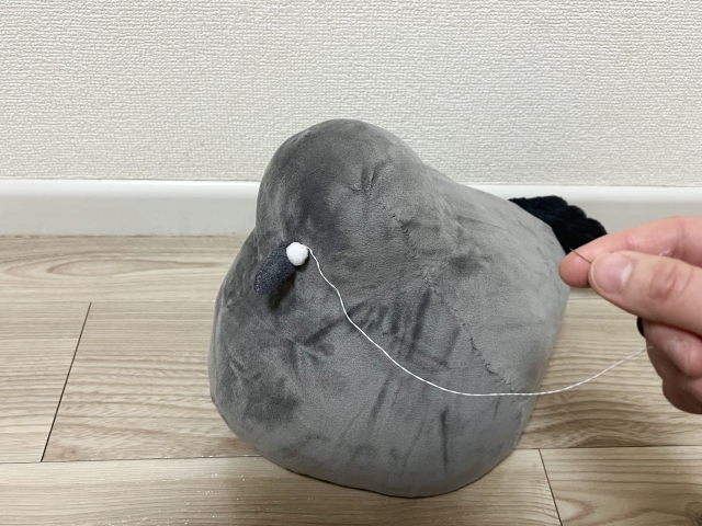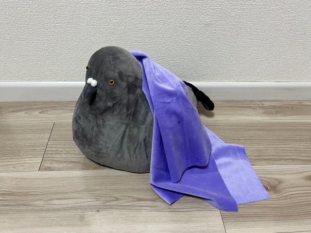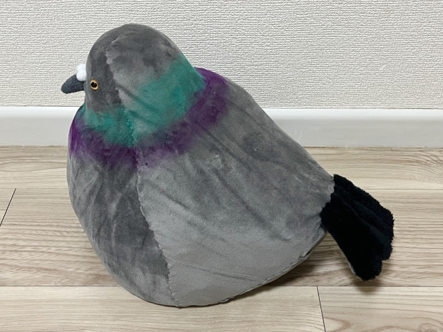 ハトの首周りには紫と緑のきれいな色がついている。布を縫い付けようと思ったのだが、求めている色の布が全然売っていない。