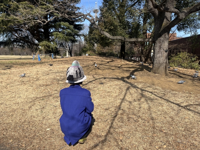 意外と土の上の方がいるのではないかと思いたち、公園でハトを探すことにした。