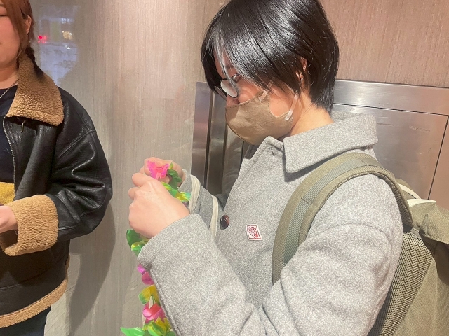 文園さん「今風の色味のレイだな〜 。私がいった時は白でしたよ」