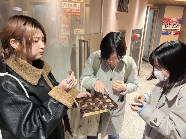 周りのビニールが全然取れず、3人がかりで格闘している……。でも、海外のお菓子ってパッケージ開けづらいのが多いよな。この開けづらさによってリアル海外土産を演出できている。いいぞ!!