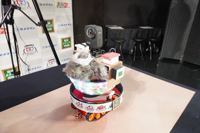 360度撮影できるGoPro、寿司を回すためにtoio(ソニーの教育用ロボット)、パイロットにモフリン(ペットロボット)と、ハイテクをこれでもかと詰め込んだマシン。