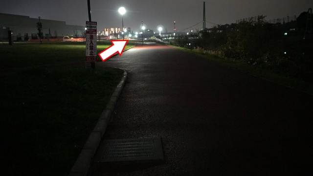 LEDがどれくらい明るいかを検証するため、川沿いの公園にやってきた。