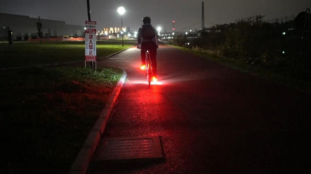 ペダルの直下にある道路も照らされるので、照射範囲は今まで付けていたライトよりも広くなっている。