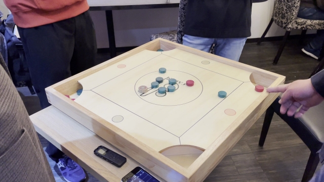 真剣勝負ではあるが、打つたびに会話が生まれて楽しかった。カロムはコミュニケーションツールでもあると感じた。