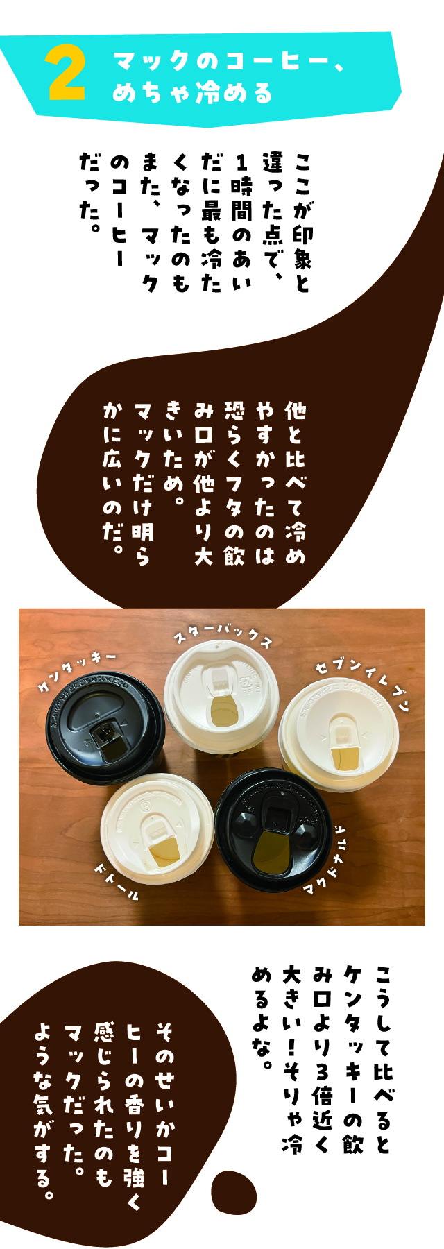 調べたところマックのコーヒーの飲み口は2023年にリニューアルして、従来より広くして香りを感じられやすいようにしたのだそうだ。