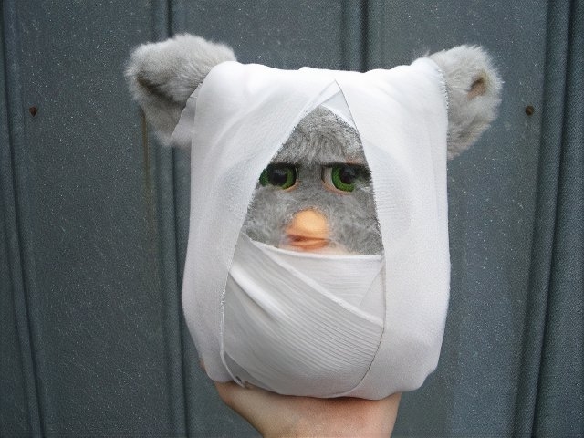 しかし、いくら萌えるからといって、怪我をしていないファービーに包帯を巻くことは、人間の傲慢であり、ファー権蹂躙も甚だしいので間違いです。