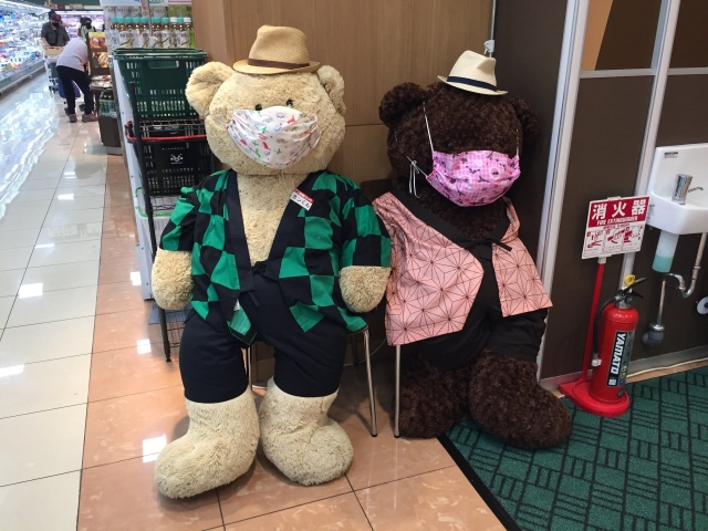 上に挙げたパンダはマスクをしていたが、コロナ禍ということもあってか他にもマスクをしたぬいぐるみもたくさん見つけることができた。本筋とは少し異なるが、そちらも紹介させてほしい。