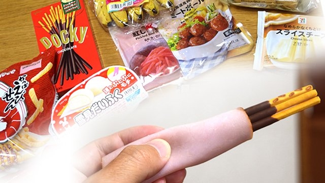 わはは! ポッキーをハムで巻いてるところに来客!?