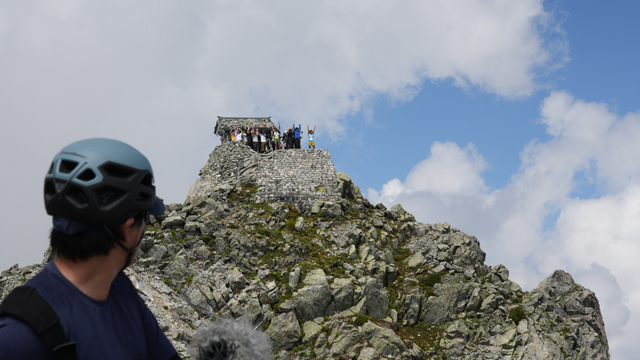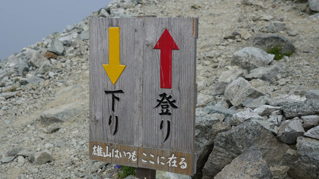 室堂平を出発しておよそ2時間、ついに雄山山頂にたどりついた。(毒蛇の)ハブを探して沢を谷底まで降りていったりするから楽勝だろうと思っていたが、いざ登ってみると結構しんどかった。しかし、いないかもしれないハブと違ってゴールがあるのが気持ちいい。