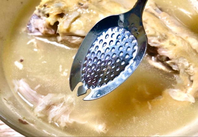 このサムゲタンは元々肉がかなり柔らかいので、普通のスプーンでもかまわないのですが、