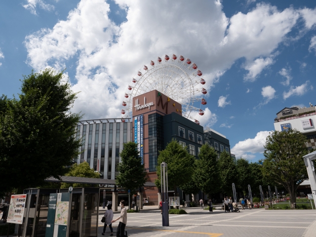 センター北のモザイクモール港北には観覧車があります。屋上は庭園として開放されていますが、ほとんど誰もいません(井上)