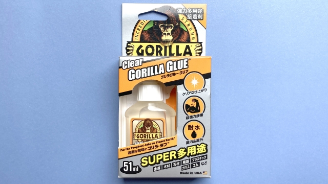 今回ほとんど偶然入手したのは『クリアゴリラグルー』という接着剤だ。ゴリラと名のつくグッズを集めてレビューした際に当サイト編集部にやってきた。