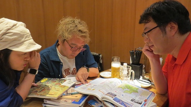 そしてライター西村まさゆき(国語・社会好き)、筆者である編集部古賀(好きな教科は特になし)。西村さんが自宅から大量の社会科の参考書を持って来てくれた