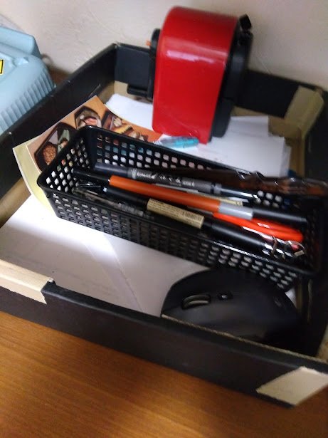 実家の食卓に置かれたリモコンやはさみが入っている箱。我々はそれを実家箱と呼んでいます。