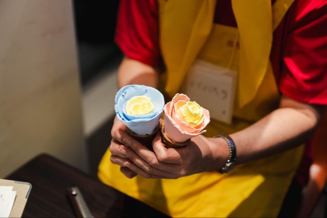 ババヘラアイスはカラー粘土で再現したという。バラのような細かい作り込みで驚きだった。
