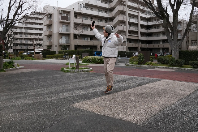 この時点では「団地の遊歩道を歩いている人」にしか見えないので、不安になって340枚撮った。いくら撮っても達成感がないので終わるタイミングが分からないがこれぐらいあれば十分だろう。