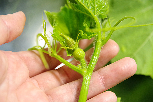 茎部分はシャクシャクしていて同じく空洞の構造をしている空心菜を思わせる。葉っぱは少しザラついているが、これくらいなら全然平気。バネのようなツルはちょっと硬くてオカヒジキのようで、赤ちゃんカボチャはカリっとしていた。