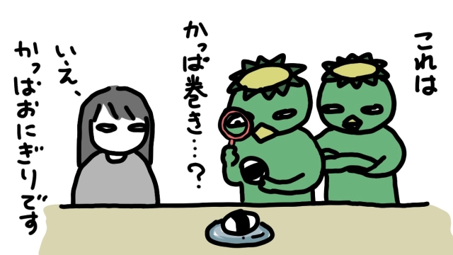 まあ、かっぱおにぎりの正解ってまだないから、間違えようもないか…。