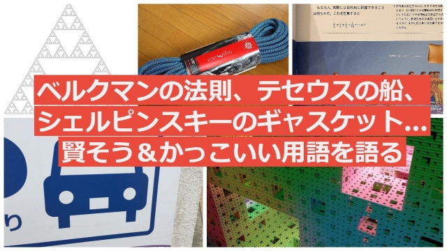 「シェルピンスキーのギャスケット」がいい感じです。無数の正三角形からなるフラクタル図形で、形のと名前の過剰さがマッチしています。「シェルピンスキー」も「ギャスケット」も聞きなじみがなく、すぐ名前を忘れるのが玉にキズです。