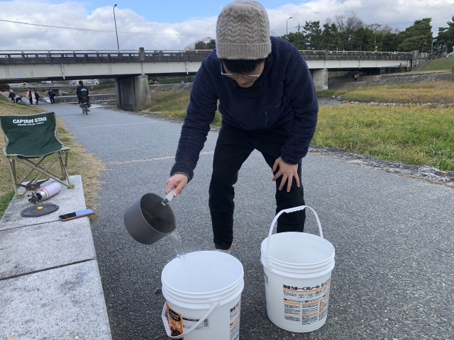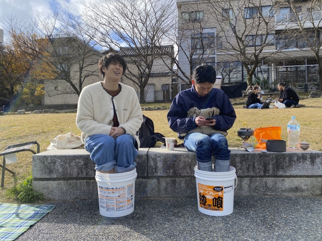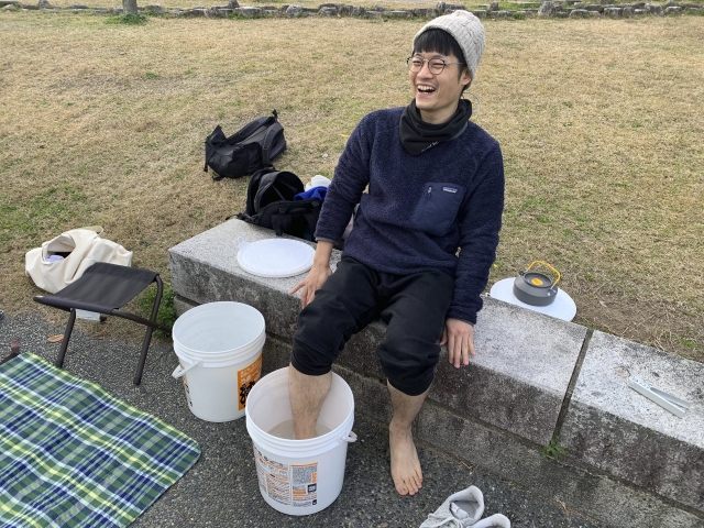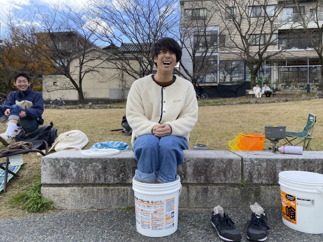 景色もいいし、水も手に入れやすい。足湯を楽しむためのステージとして、鴨川はこれ以上ないものに思えてきた。川の水も冷たいとはいえ、バケツで足が浸かる程度のお湯なら、ちょっとガスを使えば簡単に沸かせるだろう。