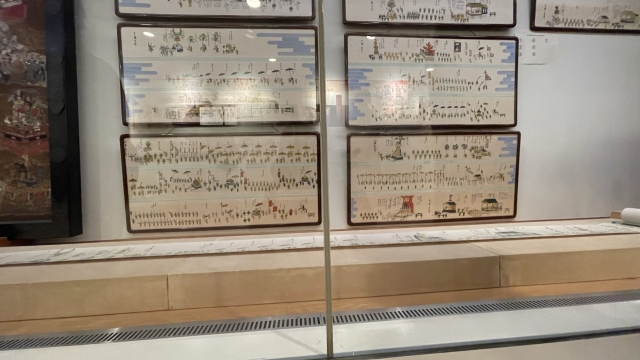 祭りの様子を描いた1826年の絵巻「川越氷川祭礼絵巻」の複製が展示されており、これがすごいかわいさだったんだ。