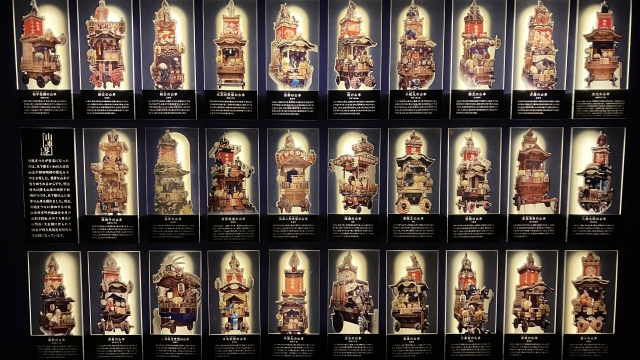 8メートルを超えるめちゃくちゃ豪華な29の山車が登場するやばい祭りで、この会館ではお祭りに出る本物の山車が常時2台展示されている。