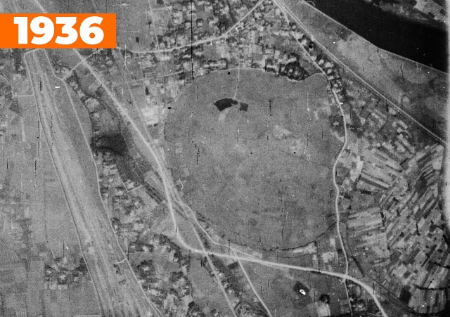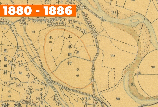 驚くべきことに、この渦巻きは少なくとも140年以上前からあるということになる。当時、渦巻きの中には水田があったようだ。また、渦巻きを左右に横断する道も、当時から存在する。