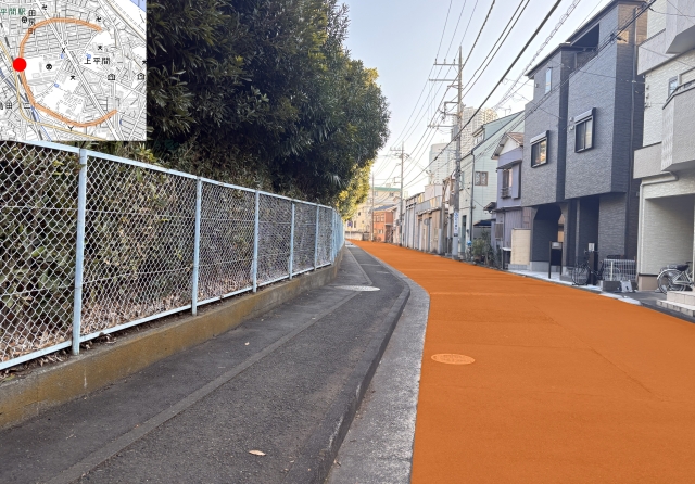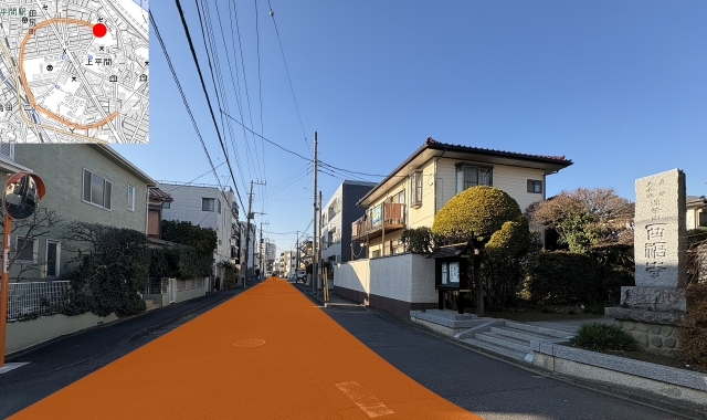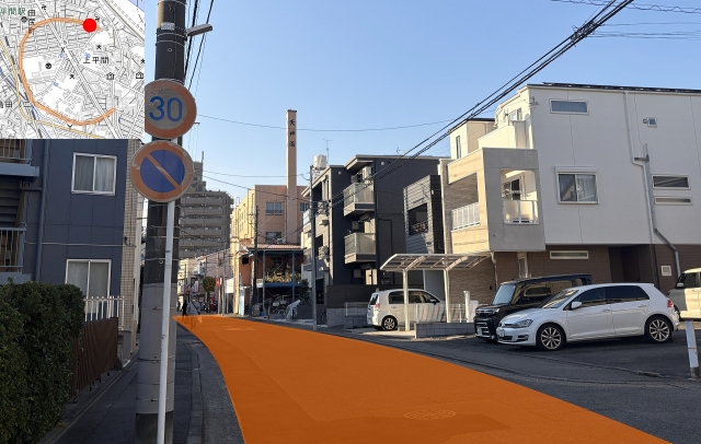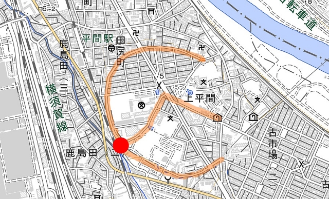地図を眺めていて見つけた不自然な形の道路。その場所はJR南武線平間駅の近くにある。まずはこちらの地図[1]を見てほしい。