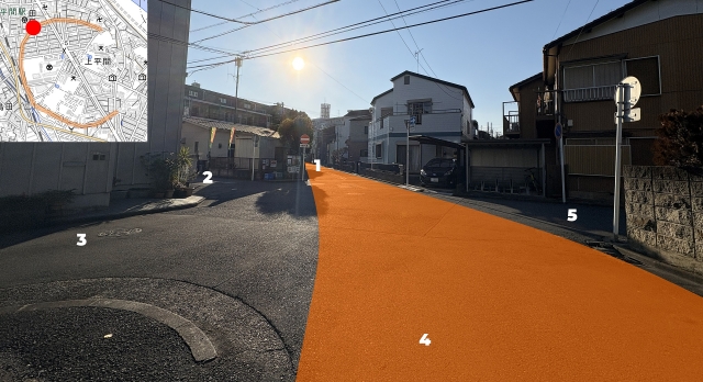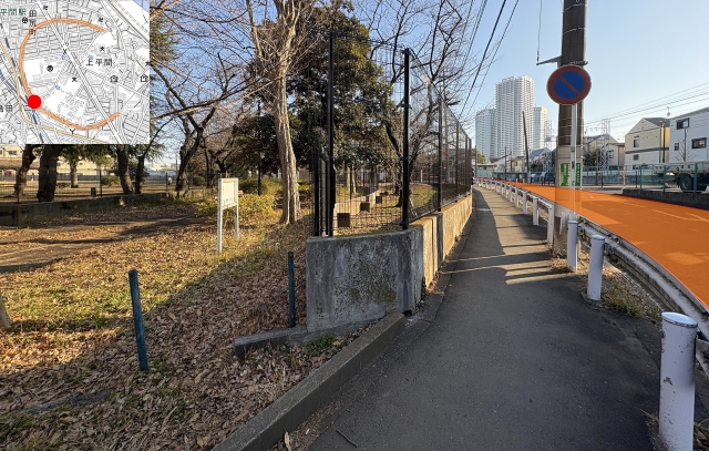 次にインターネットで検索してみる。「平間 円形の道路」で検索を掛けると4つのWebサイト[6]-[9]が見つかった。