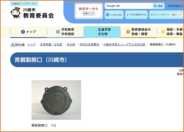 この西福寺が渦巻きと関係しているかもしれないと思い、念のため調べたところ、ある青銅製の仏具にたどりついた[22]。