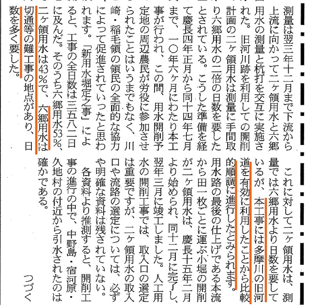 そして二ヶ領用水は1590年の大洪水の直後に開削が始まり、用水路には旧河川敷が利用された。なぜそうしたかというと、そのほうが効率がよかったらしい。