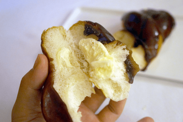 チョコのようなコーティングですがこちらはようかんです。中にホイップクリームが入っていて、甘い物好きにはたまらないパンであります。