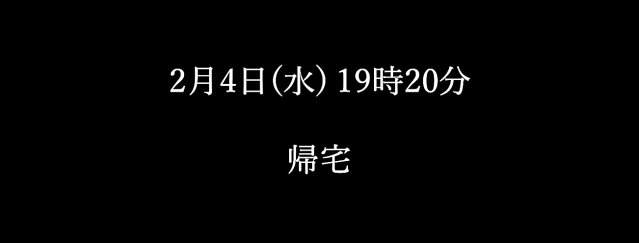 この日は職場に出社しており、仕事でへとへとになって帰ってきた。左ポケットに入ったキーケースを取り出し、鍵を使ってマンションのエントランスのオートロックを開け、エレベーターに乗り、鍵を使って自宅のドアを開ける。