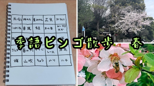 ①5×5のマスに季語を書いたビンゴカードを持って散歩する。