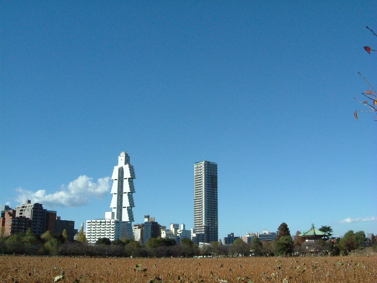 不忍池弁天堂には見覚えがあるので上野公園の風景だと分かるものの、左側の特徴的な形状のタワーには見覚えがありませんでした。