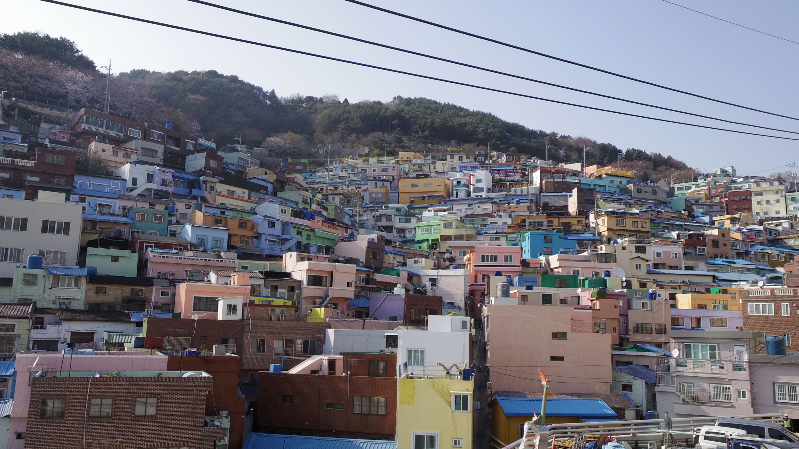 右下に写っている車がサンヨンとかサムソンとかの韓国車ぽいので「韓国 カラフル 街」で検索したら見つけることができた。