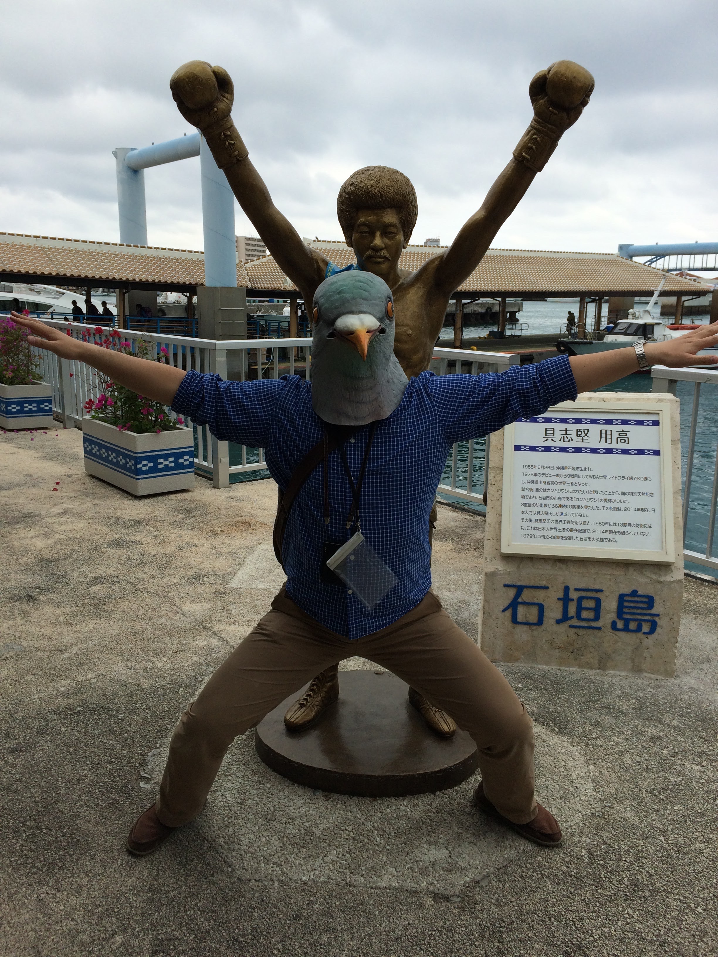 この写真を撮った場所に、具志堅用高のモニュメントがあるんですよね。