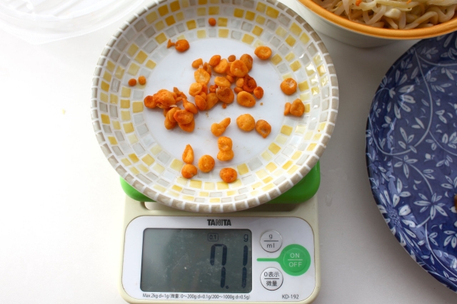 食べる前に分解して測定するコーナー。まずは豚から。まさかの16gぽっち。