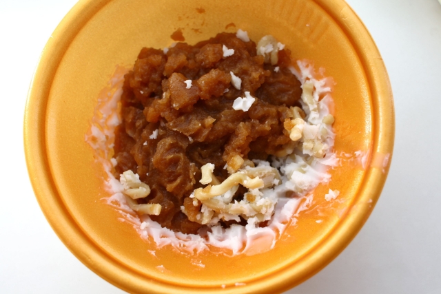 500Wでレンチン7分。出来上がるとこんな感じ。