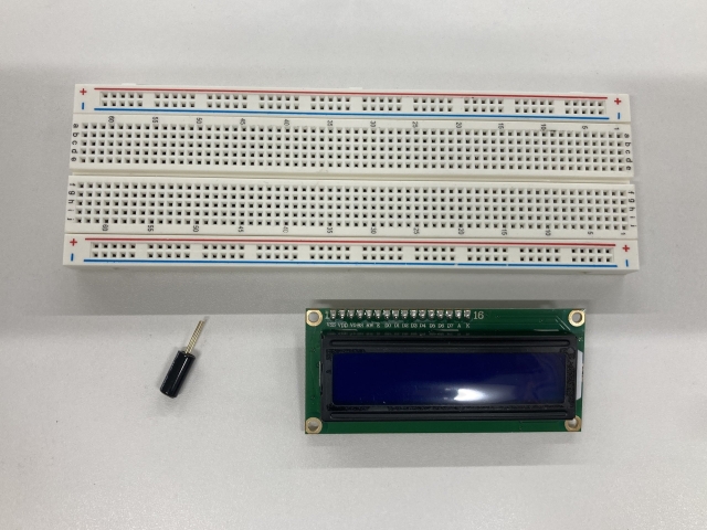 さっき(マウスを動かすマシンを作った前半)はアウトプットにサーボモーターを使いましたね。サーボモーターマウスにくっつけて、マウスを動かしました。今回は液晶を使います。電卓とかについてるやつ。